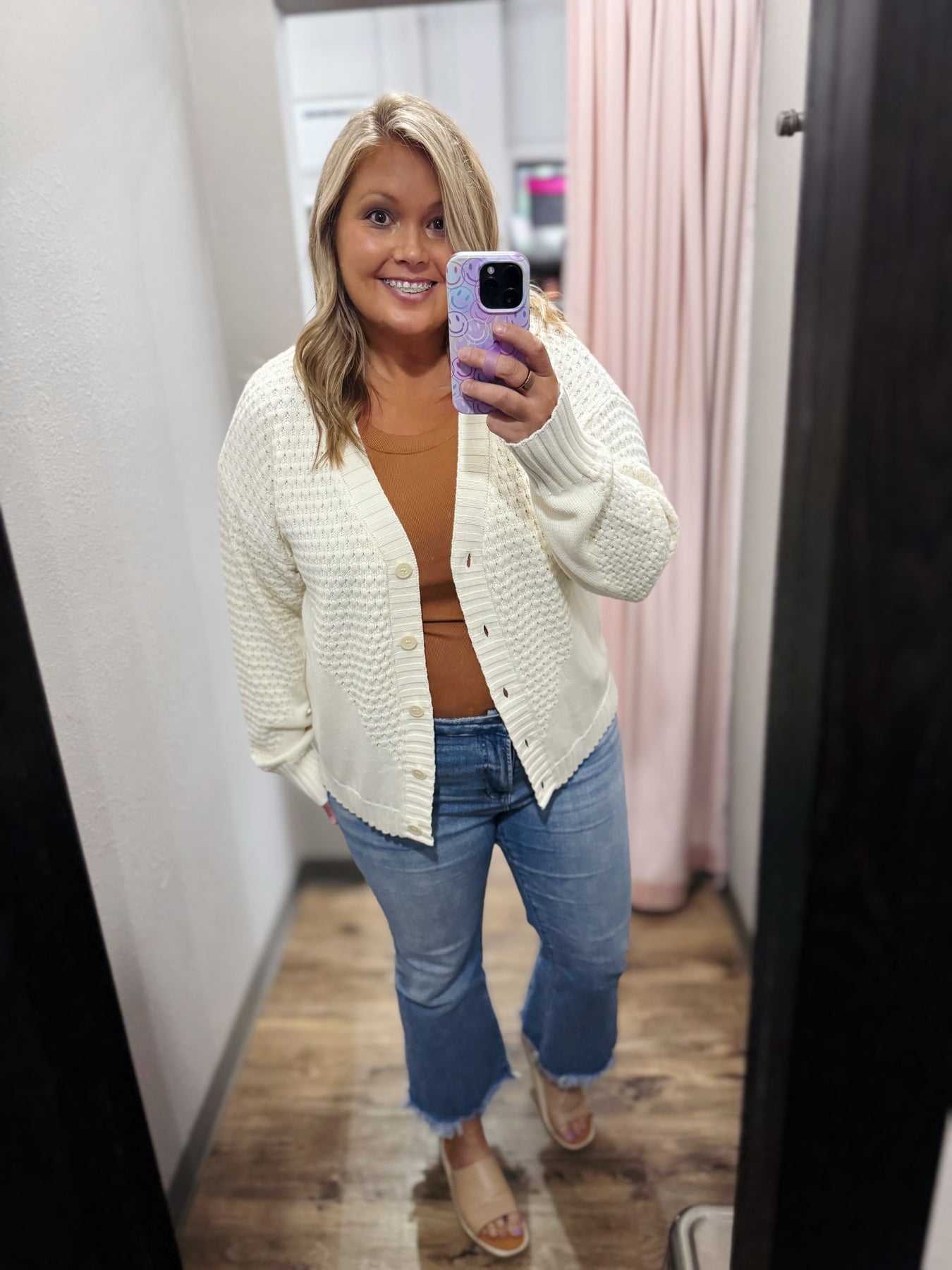 Multi Textured Knit Cardigan w/ Front Buttons Closure