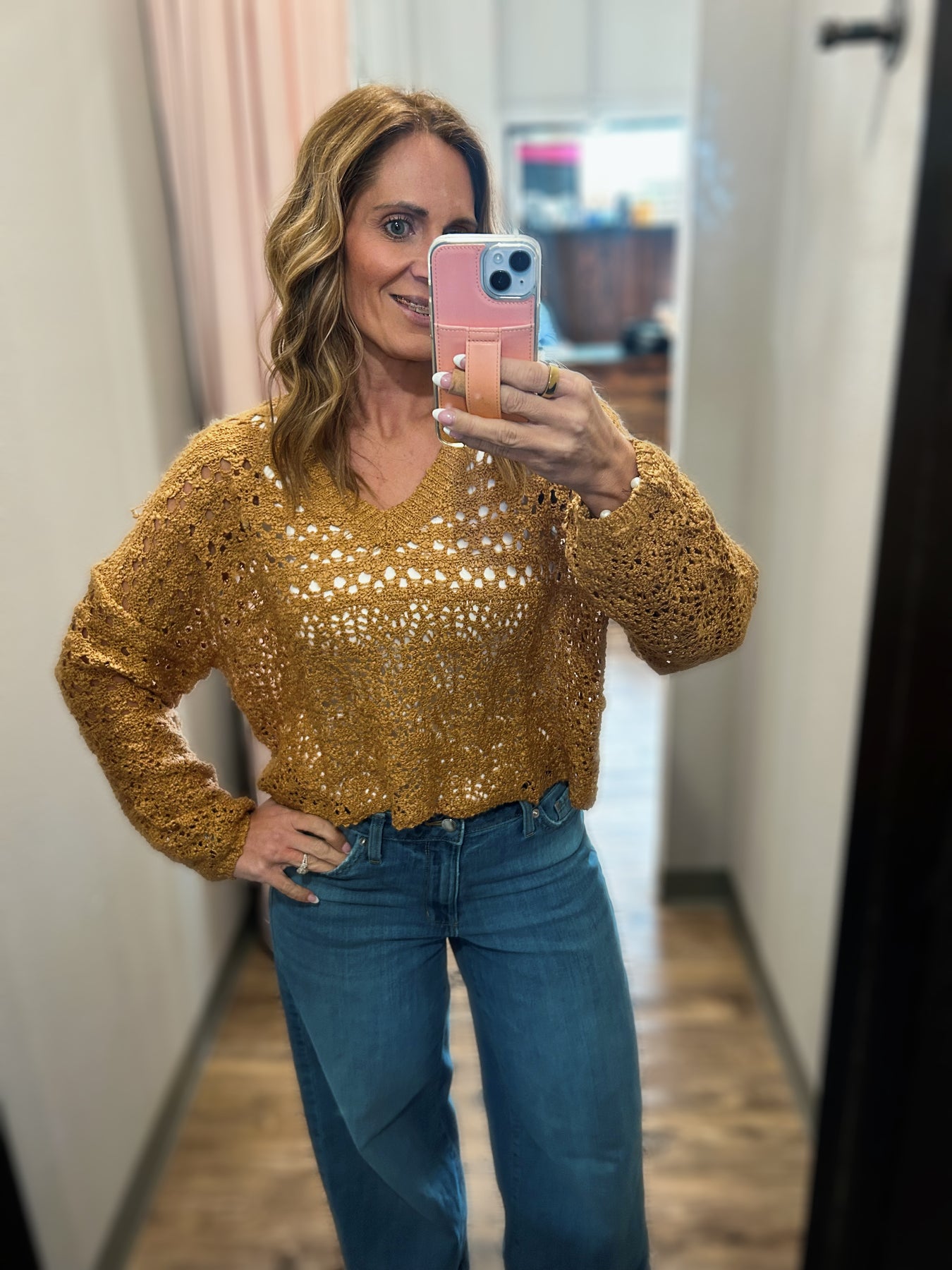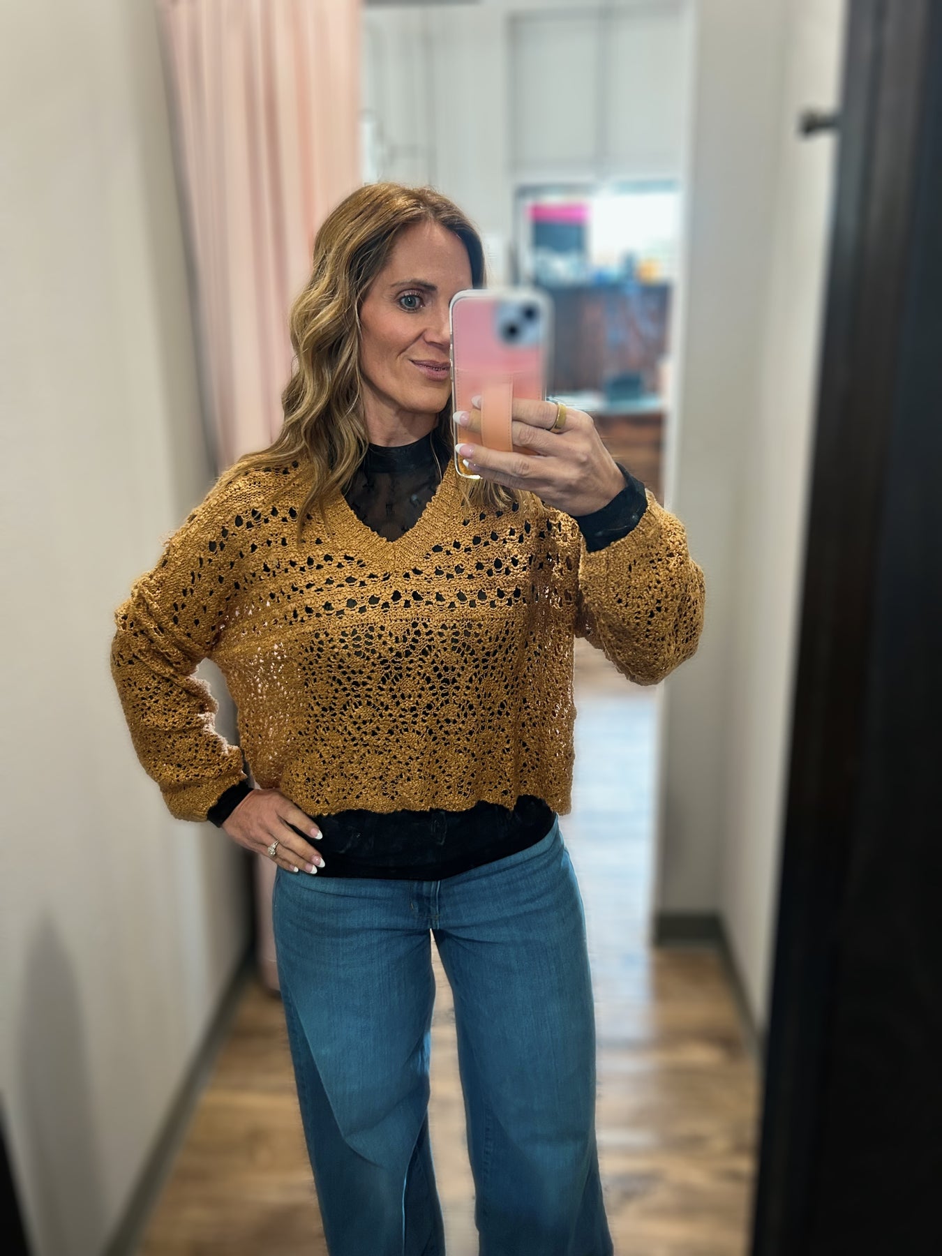 Open Knit, Vneck Cropped/Oversized Sweater
