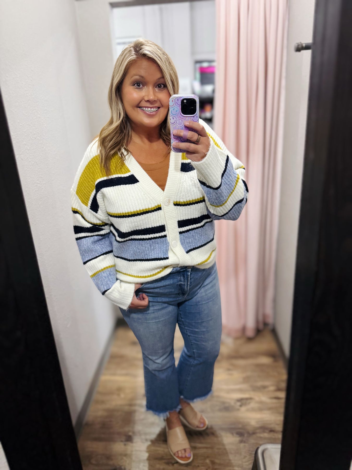 Multi Size Stripes and Color Cardigan w/ Button Closure